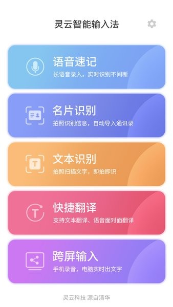 准确的语音识别率,灵云输入法应用捷通华声“灵云”提供的语音识别技术能力,所说即所写,具备自学习能力,语音识别率越用越高,与手写、文字识别、键盘输入无缝结合,相得益彰;