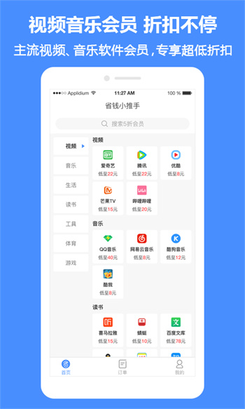 省钱小推手是专属于用户的生活服务类软件,致力于为用户打造更加便捷、实惠的购物体验。作为一款全方位的生活省钱助手,它不仅提供了海量的优惠折扣资源,还涵盖了影视会员、话费充值、出行服务等多元化生活需求。在这里,用户可以轻松找到比官方价格更低的各类商品和服务,真正实现一站式购全的便利体验。无论是追剧、听音乐,还是日常购物、出行打车,省钱小推手都能让用户享受到最贴心的优惠价格,让每一分钱都花得更有价值。