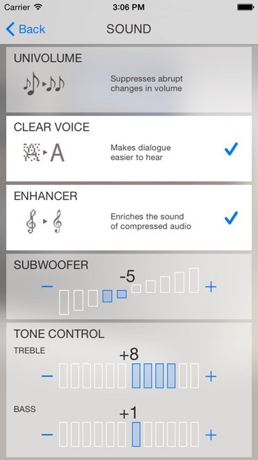 这款软件具备多种实用功能,包括基本的音量增减、输入和模式选择等操作。此外,它还支持自动或手动音线调整,特别适用于YSP-2500型号。对于YSP-1400和SRT-1000等型号,软件还提供了精准的音线调整功能,确保音频输出的最佳效果。无论是简单的音量控制还是复杂的音线调整,这款app都能满足您的需求,让您的家庭影院体验更加完美。