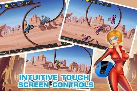 这是一款操作简单但极具挑战性的摩托车特技赛车游戏。玩家只需按屏幕左侧减速,按屏幕右侧加速,并通过旋转控制车辆角度,即可轻松上手。游戏提供70条精心设计的道路和10种不同模型供玩家选择,同时支持GameCenter功能,让玩家可以与全球玩家一较高下。驾驶摩托车时,玩家需要跳过障碍物,与时间赛跑,在30个充满乐趣和挑战性的关卡中赢得星星。获得的星星越多,解锁的摩托车就越多,玩家可以随时回到已完成的关卡,挑战更高的分数。360度旋转奖励机制为游戏增添了更多刺激和乐趣。