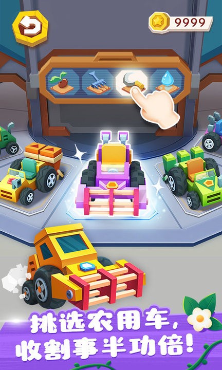 游戏从最基础的土地开垦开始,小朋友们需要驾驶各种农用机械,将荒地变成肥沃的农田。在播种季节,可以选择种植草莓、玉米、南瓜等十多种常见农作物,每种作物都有独特的生长周期和培育要求,让孩子们在游戏中学习到真实的农业知识。