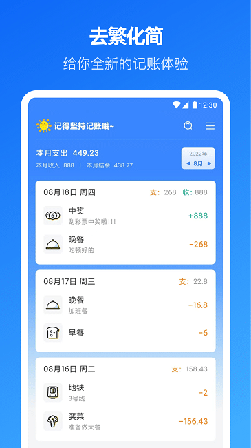 极简的操作流程让记账变得快速高效,大大节省用户时间。作为生活中的记账好帮手,它能帮助您建立良好的财务习惯。化繁为简的设计理念去除了一切不必要的操作步骤。清爽整洁的界面设计带来愉悦的使用体验。完美适配各类安卓设备,确保在不同品牌手机上都能流畅运行。
