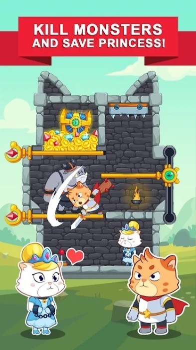 -用你的心态拉动别针摧毁怪物,然后拯救公主并收集宝藏,体验解谜与冒险的双重乐趣。