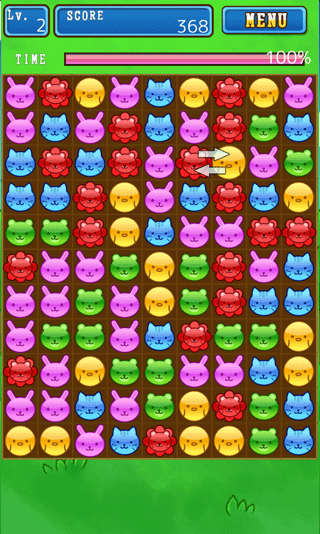 将三个或更多的相同动物放在同一行即可消除它们,消除的动物越多,获得的积分也越高。