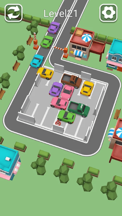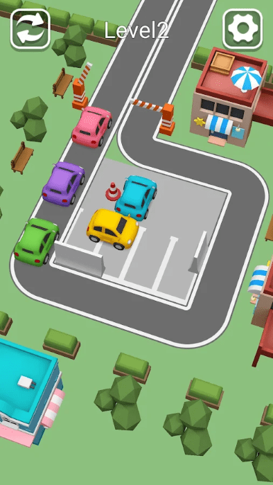 如果汽车相互碰撞,您必须重新开始停车游戏。画线并小心!点击并画线来控制汽车、驾驶和停放汽车,确保每辆车都能顺利驶出停车场。