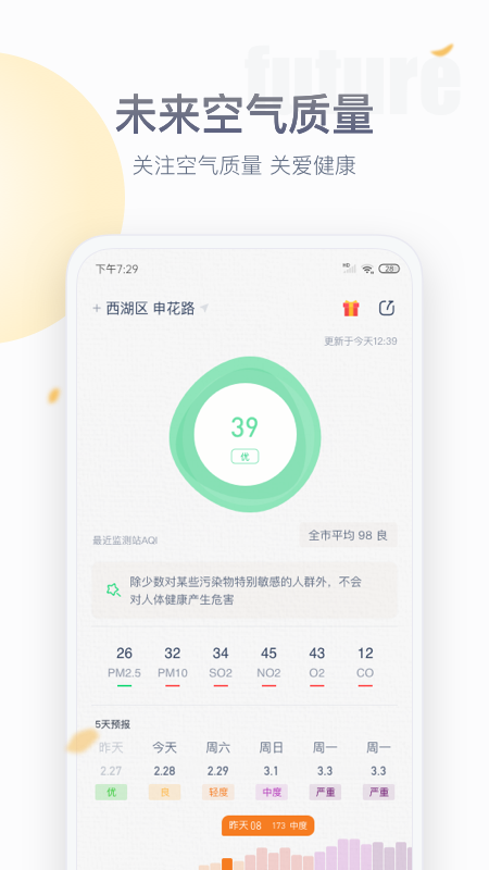 整合环保部门监测站点数据,每小时自动更新空气质量指数。新增的污染物溯源功能,可以查看主要污染物的成分构成和来源分析。特别设计的"空气健康指数",综合考量PM2.5、臭氧等多重因素,给出更全面的健康建议。