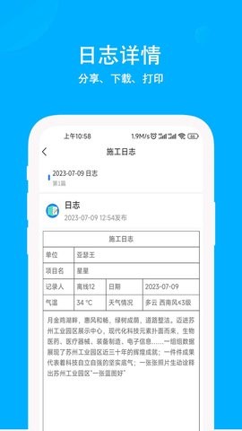 施工日志手机版app是专为建筑工程行业设计的智能化管理工具,通过数字化手段革新传统纸质记录方式。该应用不仅能精准记录每日施工进度、人员考勤、设备使用等核心数据,还能智能关联天气信息与工程节点,自动生成符合行业规范的施工日志。其特色在于内置海量标准化模板库,支持一键生成监理日志、安全日志等专业文档,同时具备云端同步、多端协作等现代化功能,让工程管理摆脱时间与空间限制,实现施工全过程的可视化、标准化管理。