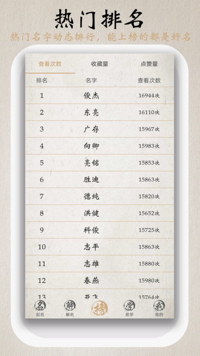 1、新增名字排行功能,让用户了解当前最受欢迎的名字