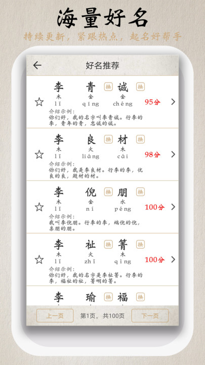 2、拥有海量优质名字资源,实时更新热点名字,是您起名的得力助手