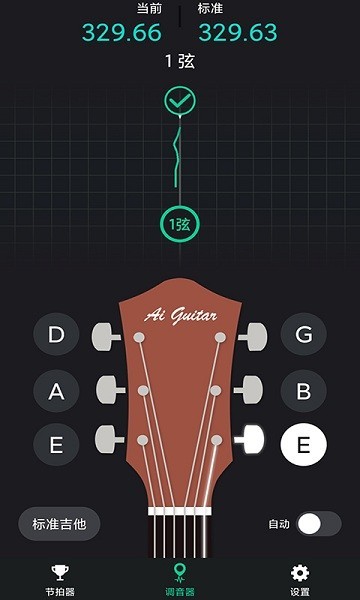 初学者和高手均适用,无论你是刚入门的新手还是专业乐手,都能找到适合自己的调音方式。自动模式和手动模式自由切换,满足不同场景下的调音需求。支持吉他调音和尤克里里调音,一app多用,省去下载多个调音工具的麻烦。设计简单漂亮而又充满人性化,界面配色清新,操作逻辑符合用户习惯。通过手机麦克风智能精准的识别音乐,即使在嘈杂环境中也能保持高识别率。指针式计量表,指针指向刻度0表示音是准的,直观明了,让调音结果一目了然。