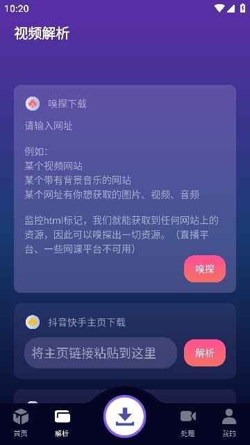 经过实测,软件下载速度可稳定保持在10Mb/S以上,并创新性地加入了边下边播功能,让用户无需等待完整下载。短视频下载支持抖音、快手等18个主流平台,下载内容均为高清无水印版本,配合专业的视频处理工具链,可实现音频提取、重复检测、体积压缩等后期操作。在解析功能方面,软件内置强大的网页嗅探引擎,能精准识别各类网页视频资源并转换为可下载格式。音乐爱好者特别青睐的无损音质下载功能,支持在线试听后一键保存高品质音频文件。对于图片类资源,软件同样提供简单高效的操作流程,让壁纸、头像等素材获取变得轻而易举。