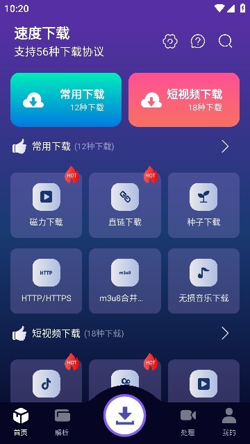 速度下载APP是一款专为安卓用户设计的全能型下载工具,集多种实用功能于一身。它不仅支持磁力链接、BT种子、HTTP/HTTPS等56种下载协议,还能智能解析短视频平台内容,让用户轻松保存喜爱的视频资源。特别值得一提的是,该软件具备强大的网页视频嗅探能力,可自动识别并转换为MP4格式。界面简洁直观,所有功能一目了然,完全免费且无广告干扰,无需注册即可畅享高速下载体验。无论是日常文件下载还是多媒体资源获取,这款工具都能满足您的需求。