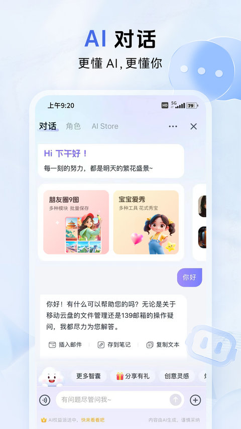 1. 云端高性能:依托中国移动服务器集群,提供媲美旗舰手机的运算能力。