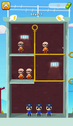 操作极其简单,只需轻触屏幕移动别针即可完成所有操作,无论是孩子还是老人都能轻松上手。游戏采用清新明快的卡通风格,角色形象生动可爱,监狱场景还原度极高,让玩家仿佛置身于真实的越狱行动中。背景音乐轻松愉悦,既能缓解解谜压力,又能营造出紧张刺激的逃脱氛围。游戏界面简洁干净,没有任何广告干扰,让你完全沉浸在破解谜题的乐趣中。随着关卡推进,游戏会逐步解锁更多挑战模式,包括限时逃脱、多人合作等创新玩法,保证玩家始终充满探索欲望。