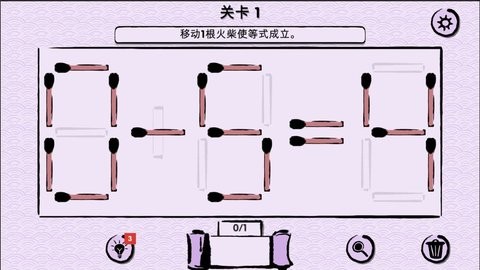 简单的游戏规则,只需要不断的进行移动来闯关。核心玩法虽然简单易懂,但衍生出的变化却无穷无尽。玩家只需通过拖拽、旋转等基本操作来调整火柴棍位置,但如何用最少的步骤达成目标却需要深思熟虑。