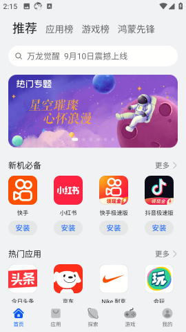华为应用市场最新版是一款功能强大且安全可靠的应用下载平台,不仅为华为手机用户提供专属服务,同时也为非华为手机用户开放了丰富的应用资源。无论您使用的是哪个品牌的安卓设备,都能在这里找到海量优质应用和游戏,满足日常娱乐、工作、学习等多样化需求。平台持续优化用户体验,让下载更便捷、使用更安心。