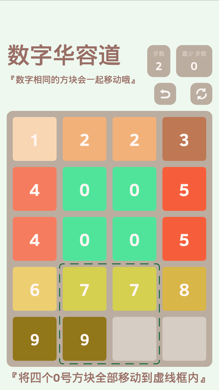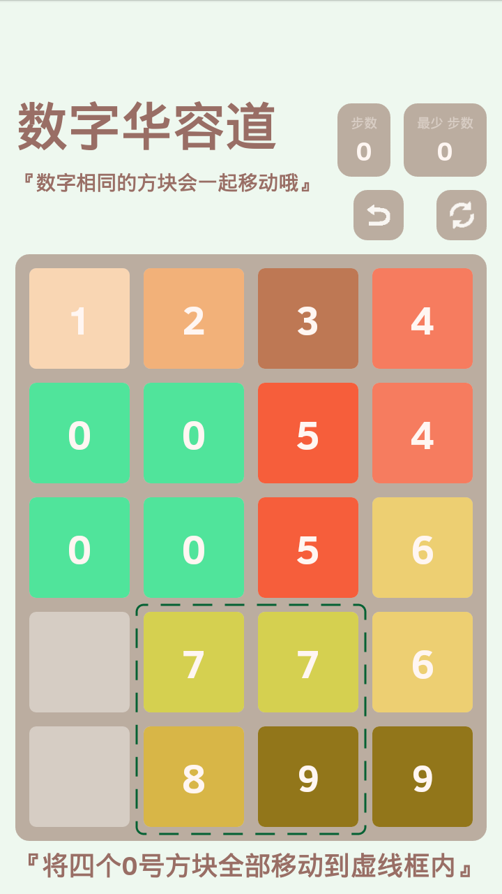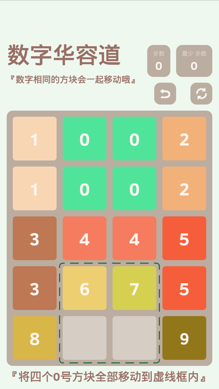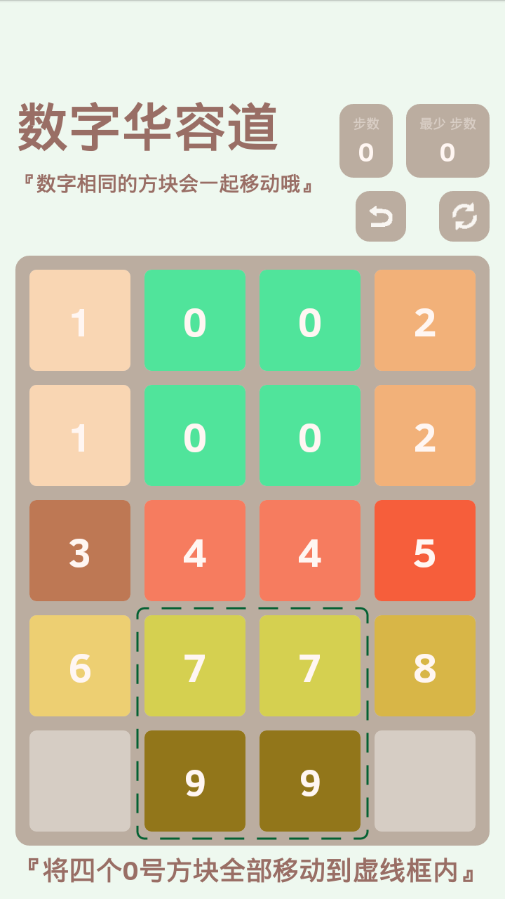 "数字华容道"作为一款兼具趣味性与挑战性的益智游戏,其玩法规则简单易懂但极具深度。游戏采用经典的华容道棋盘布局,玩家需要通过移动各个数字方块(相同数字的方块会同步移动),最终帮助代表曹操的0号色块从初始位置移动到棋盘最下方的中央出口处。游戏过程中不允许跨越其他方块,且需要尽可能用最少的步数完成任务。