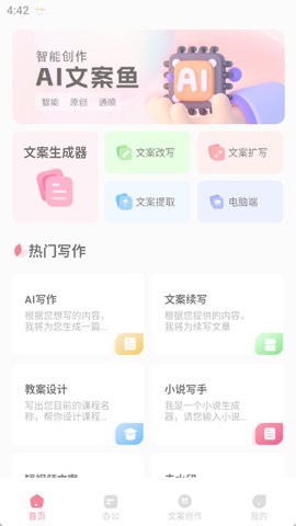 AI文案鱼app是一款专为文案创作者打造的智能写作助手,它通过先进的AI技术为用户提供全方位的创作支持。这款应用不仅拥有海量的文案素材库,还能根据用户需求智能推荐相关内容,大幅提升创作效率。无论是广告策划、品牌宣传还是社交媒体运营,AI文案鱼都能帮助用户快速找到灵感,轻松完成高质量文案创作。其简洁直观的界面设计和强大的功能组合,让文案创作过程变得更加流畅和愉悦。