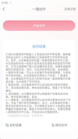 该软件里面有着非常丰富的文案资源库,满足不同用户的该种创作需要。从商业文案到社交媒体内容,从广告标语到产品描述,覆盖各行各业的需求。用户可以根据行业、场景、风格等多维度筛选所需素材。