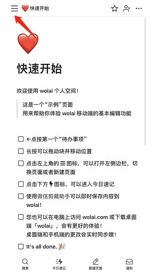 wolai我来笔记是一款功能强大的云端笔记工具,致力于为用户提供高效便捷的知识管理体验。通过简洁直观的界面设计,用户可以快速创建各类笔记页面,支持富文本编辑、多级目录管理等实用功能。软件内置表格、看板、表单等多种视图模式,满足学习笔记、项目管理、会议记录等不同场景需求。所有数据实时同步至云端,确保跨设备访问的连贯性。特别设计的个人空间管理系统,让海量笔记都能井井有条,配合强大的搜索功能,随时精准定位所需内容。