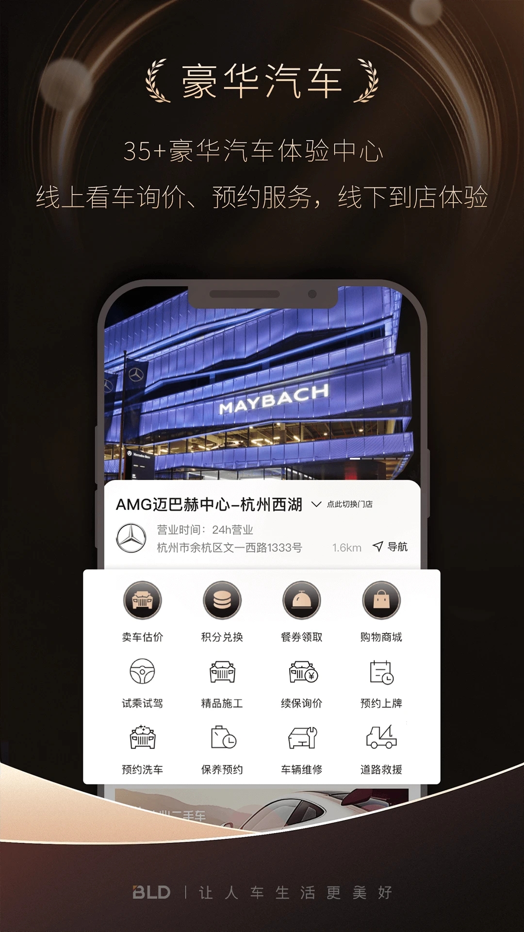 拥有劳斯莱斯、保时捷、梅赛德斯-等在内10个全球奢侈及豪华汽车品牌、近40家线下体验中心,融合豪华汽车、精品零售、高档餐饮、艺术品鉴、高端论坛、生活方式主题活动等核心功能,提供省心、放心、贴心的零距离服务体验。每家体验中心均配备多语种服务人员,满足国际化客户需求。