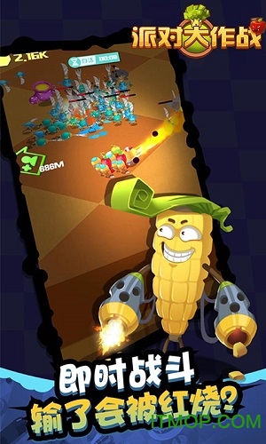派对大作战破解版是一款充满欢乐与刺激的休闲射击类游戏,它将萌趣的卡通蔬菜拟人化,让这些可爱的食材在餐桌上展开一场别开生面的生死对决。游戏以独特的创意为核心,将厨房中的食材与餐具之间的对抗转化为一场紧张激烈的枪战。玩家可以选择扮演胡萝卜、红辣椒、土豆或茄子等角色,拿起武器与追击的刀叉展开殊死搏斗。在这场战斗中,失败者将面临被红烧或烹饪的命运,而胜利者则能享受"吃鸡"的荣耀。游戏特别为氪金玩家提供了无限金币和钻石的破解版本,让玩家能够尽情体验游戏的乐趣。