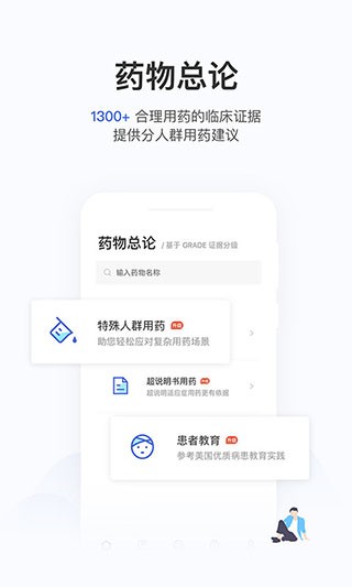 用药指南:建立动态更新的指南知识图谱,智能关联相关药品、检验指标等内容。新增指南质量评价体系,帮助医生快速识别高证据等级推荐意见。