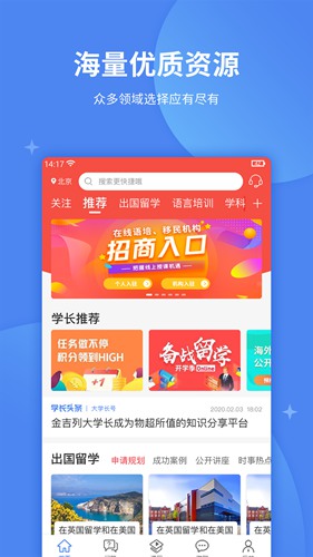 平台采用智能推荐算法,根据用户的学习需求和兴趣偏好,精准推送各类优质内容。无论是留学资讯、备考攻略,还是海外生活指南,都能快速获取。专业编辑团队严格把控内容质量,确保每篇文章、每段视频都具有实用价值。用户还可以通过关键词搜索、分类筛选等方式,轻松找到自己需要的信息资源。