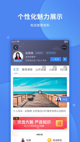 平台汇聚了来自全球的教育专家和成功留学人士,为用户提供涵盖语言培训、考试技巧、院校申请、签证办理等全方位的留学服务。用户可以通过智能匹配系统找到最适合自己的导师,获取一对一的专业指导。平台还定期举办线上讲座和分享会,邀请海外名校招生官和留学生现身说法,帮助用户全面了解留学过程中的各种细节。