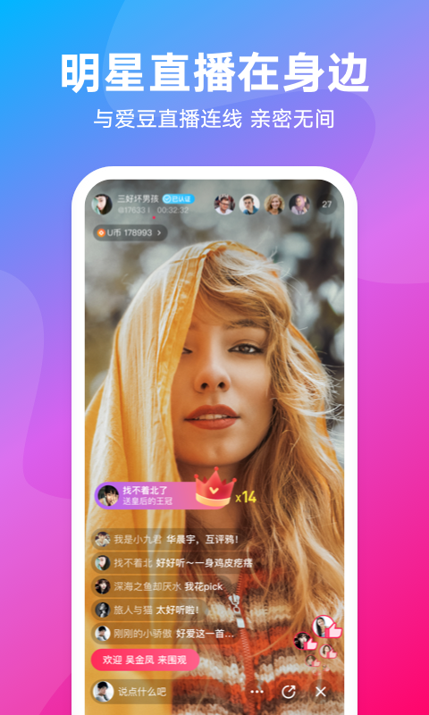 与直播连线,亲密无间,支持多人连麦互动,拉近与偶像的距离;