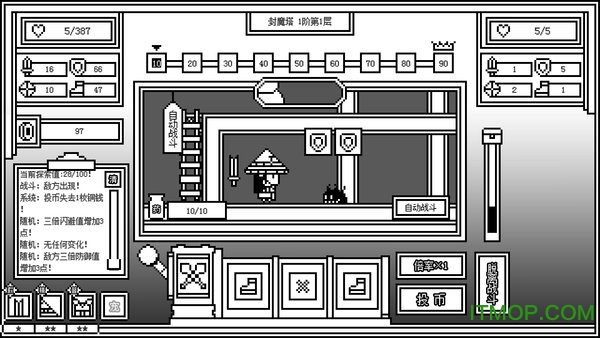 游戏中的土地庙是一个神奇的地方,你可以在这里饲养会吐钱的怪物,轻松积累财富。此外,游戏还提供了丰富的场外内容,除了爬塔挑战外,还有多种养成要素等你体验。你可以通过钓鱼获取金钱、材料和装备,甚至可以去赌场试试手气,让财富翻倍。这些玩法都没有上限,只要你愿意投入时间,100层的高塔也能轻松征服。