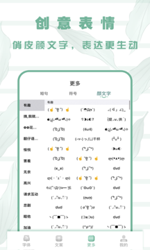 花样字体app是一款专为文字美化而生的创意工具,让你的社交表达不再单调。无论是聊天对话、朋友圈分享,还是个性签名,这款软件都能为你提供海量炫酷字体、趣味颜文字和吸睛文案。内置数百款动态字体库,从文艺小清新到赛博朋克风应有尽有,搭配持续更新的热门表情包和网络热梗,让你的每次文字互动都充满惊喜。更支持多平台适配,一键复制即可在微信、微博、小红书等主流社交平台使用,轻松成为朋友圈里的文字艺术家。