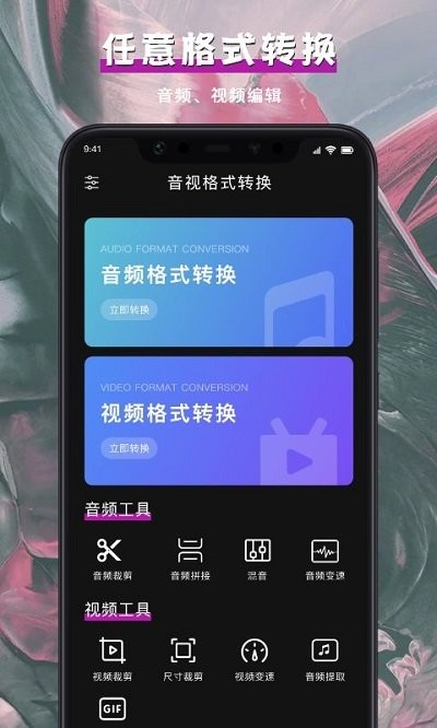 音视频格式转换app是一款专业且高效的多媒体处理工具,专注于为用户提供全方位的音视频格式转换服务。无论您是需要转换音频文件还是处理视频格式,这款软件都能轻松满足您的需求。其简洁直观的界面设计让操作变得异常简单,即使是初次使用的用户也能快速上手。软件支持多种常见音视频格式的相互转换,同时还提供压缩、提取、剪切等实用功能,让您的多媒体文件处理更加得心应手。如果您正在寻找一款功能强大且易于使用的音视频转换工具,这款软件绝对是您的不二之选,快来下载体验吧!