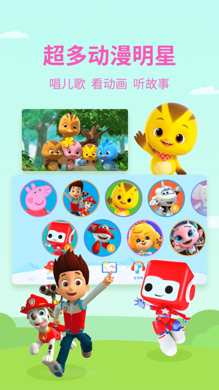 内容精彩丰富,动画鲜活有趣,涵盖了早教、儿歌、动画等多种内容,让宝宝尽情享受动画时光,在快乐的氛围中慢慢成长。特别设计的情景式学习模式,将知识融入动画剧情,让孩子在不知不觉中掌握新技能。