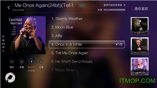HiFi音乐TV版是一款专为家庭影音发烧友设计的顶级音乐应用,致力于为用户提供超越CD音质的极致听觉享受。应用精选全球最具艺术价值和录音品质的音乐专辑,每首作品都经过专业团队严格筛选,确保音质纯净无瑕。除了支持5.1环绕声和Hi-Res母带级音乐播放外,还提供详尽的唱片介绍、精美封面展示和主题歌单推荐。用户可以通过智能电视或机顶盒遥控器轻松操作,实现快速搜索、播放、收藏和下载功能。应用还创新性地整合了在线唱片商城和音乐杂志,让您一站式享受音乐世界的所有精彩。其卓越的音质表现更是在2016年MIDEM国际音乐博览会上获得广泛认可,配合专业音响系统使用效果更佳。