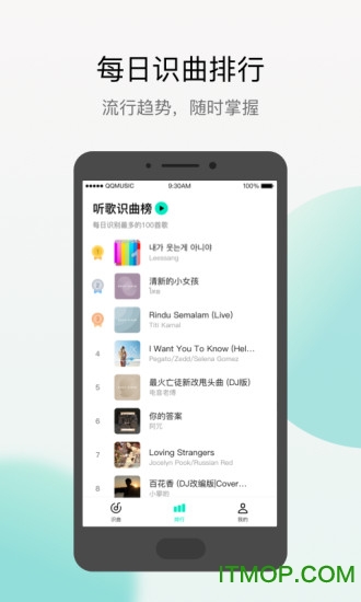 识别排行:每日更新全网最热门的识别歌曲榜单,直观展示当下最受欢迎的音乐作品,帮助用户紧跟音乐潮流。