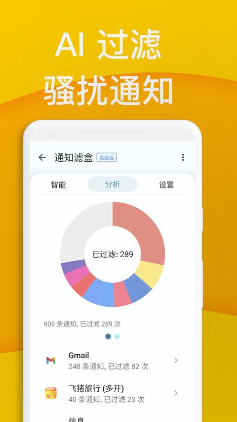 所有的功能都是免费给你去使用的,而且支持通知历史以及通知过滤、其他功能等。高级版仅解锁少量额外功能,基础功能完全免费,无广告打扰。