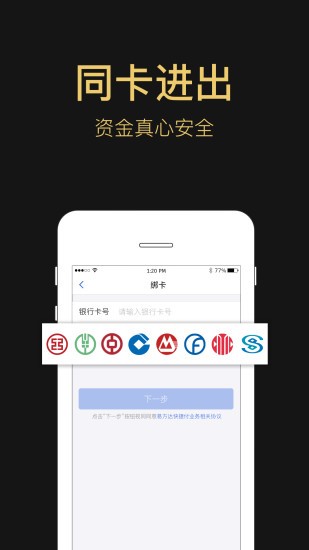 【资金安全】通过央行认证的第三方存管体系,严格执行同卡进出原则,配合人脸识别验证机制。