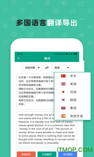提供高精度文字识别功能,可以快速扫描图片中的文字并支持复制/导出。同时支持扫描结果的多种语言翻译,并能导出为txt或pdf格式,满足不同用户的多样化需求。