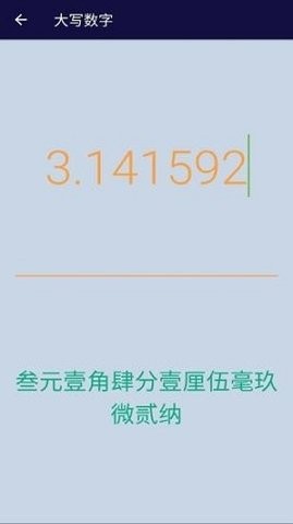 大写转换:应用还提供数字转大写功能,方便用户在填写票据或合同时快速获取对应的大写金额,避免手动转换的麻烦,提升工作效率。