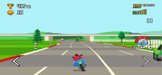 《公路赛》是一款充满复古情怀的像素风格摩托车竞速游戏。在这款游戏中,玩家将驾驶酷炫的摩托驰骋于多样化的赛道,体验速度与激情的碰撞。游戏采用经典像素画风,搭配简单易上手的操作方式,为玩家带来纯粹的竞速乐趣。无论是躲避车辆还是收集金币,都能让玩家重温暴力摩托的经典玩法。丰富的游戏模式和个性化定制选项,让每位玩家都能找到属于自己的竞速体验。现在就加入这场像素世界的极速狂飙吧!