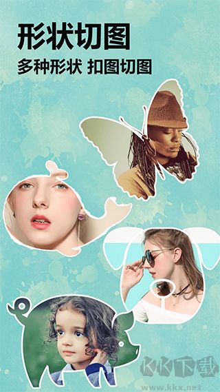【创意图形裁剪】包含动物、植物、几何等数十种趣味裁剪形状。每月更新特色模板,让你的照片以最独特的方式呈现。