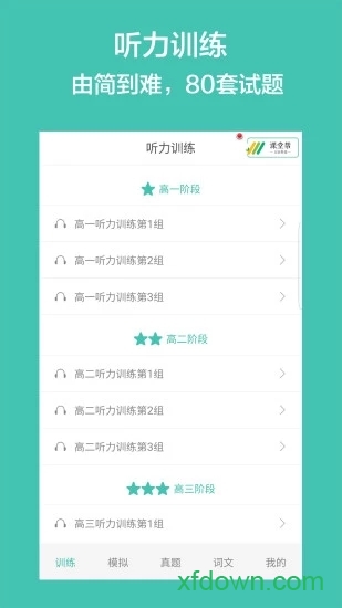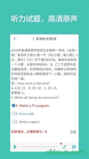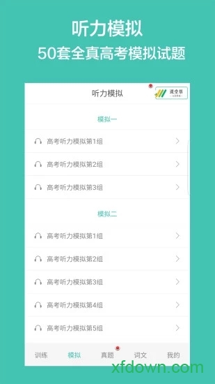 1. 模拟考试:提供与高考听力考试完全一致的模拟考试环境。