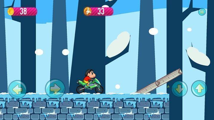 角色选择:游戏初始提供蜡笔小新作为默认角色,玩家可以通过完成任务或收集金币解锁更多角色,如风间、妮妮、正男等,每个角色都有独特的技能和属性。比如风间可以短暂加速,妮妮则拥有额外的生命值,让游戏体验更加丰富多彩。