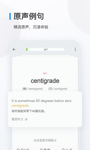 精选自《每日英语听力》的海量原声例句,涵盖热门电影、美剧以及BBC、CNN、经济学人等专业新闻内容。这些真实语境中的例句不仅能帮助理解单词用法,还能提升听力水平。每句例句都配有标准发音,让学习更加生动有趣。