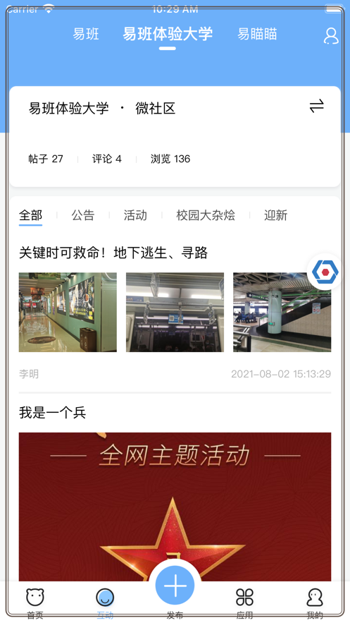 互动:新的互动内容,融合易瞄瞄和校园微社区,采用多种互动模式结长体系提供优质的内容发布和传播通道。支持话题讨论、直播互动等丰富形式。