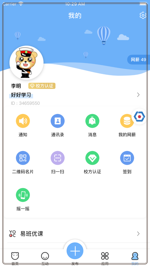 易班是由国家互联网信息办公室、教育部和上海市教委联合指导建设的综合性互联网教育平台,致力于打造新时代高校网络思政教育主阵地。平台以立德树人为根本任务,通过"互联网+"模式整合教育教学资源,提供思想引领、文化娱乐、生活服务等全方位功能。在这里,学生可以与经过实名认证的师生进行深度交流,获取权威教育资讯,参与丰富多彩的线上活动。易班还特别注重营造积极向上的校园网络文化氛围,通过创新互动形式激发学生学习兴趣,促进师生良性互动,是连接校园生活各个场景的重要纽带。