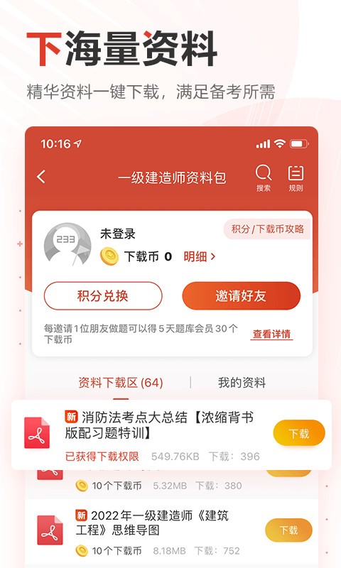 233网校是一款专注于职业资格与升学考试的学习教育平台,汇聚了海量优质视频课程资源,涵盖金融、建筑、财经、医学等多个领域。平台提供完全免费的学习体验,用户无需注册会员或忍受广告干扰,即可畅享各类精品课程。无论是备考职业资格考试还是提升专业技能,233网校都能满足不同用户的学习需求。平台不仅提供丰富的视频教学内容,还配套了完善的学习题库和模拟考试系统,帮助用户巩固知识点。最新版的233网校客户端支持一键下载功能,让用户能够随时随地获取学习资料,打造个性化的移动学习空间。