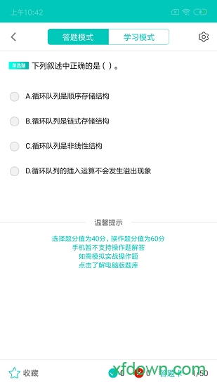 【练题模式】提供随机练习、顺序练习、模拟考试三种模式,满足不同学习需求