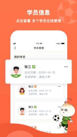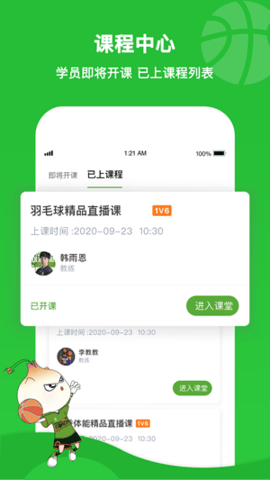 在个人中心界面,用户可完善详细档案信息,系统会基于身高体重等数据生成专属运动建议。学员管理支持添加多个家庭成员,智能课表会自动同步所有学员的培训安排。课程中心采用日历式视图,不仅显示直播课程,还提供录播回放功能,错过课程也能随时补学。每节课程结束后,系统会自动生成包含运动时长、消耗卡路里等数据的训练报告,帮助家长全面掌握孩子的运动情况。